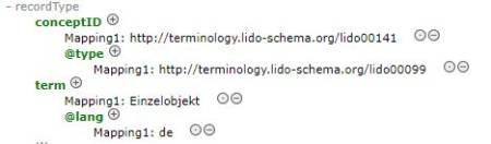 Besonderheit eines LIDO Mapping stellen die Thesauri dar, Beispiel: