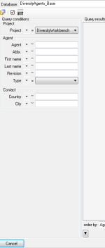 Beim Klick auf in database (3) geht ein Fenster zum Suchen der Person in DiversityAgents auf. Wenn die Nutzer nicht als Agents in diversityAgents eingetragen sind können sie hier nicht angelegt oder gefunden werden, dann dieses Fenster mit Cancel schließen.