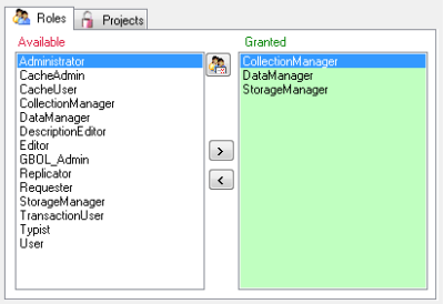 Benutzerzuordnungdie gewünschte Datenbank anhaken (z.B. DiversityCollection_SMNS), dann in der Liste darunter die gewünschten Mitgliedschaften auswählen (was hier nicht angehakt ist, kann in DWB nicht ausgewählt werden)