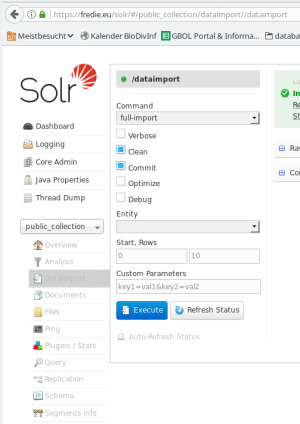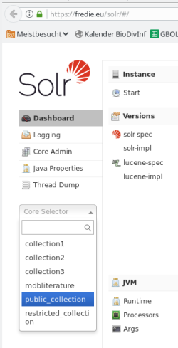 Connect to solr web page https://fredie.eu/solr with user solr_usr password ••••••••••