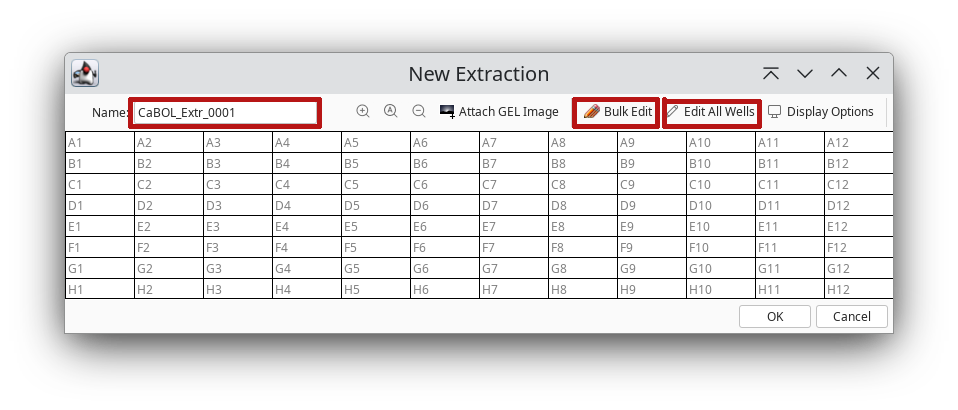 The Edit All Wells icon should be used to enter the laboratory information for the plate. These information will later be stored in the corresponding entries in the DC.