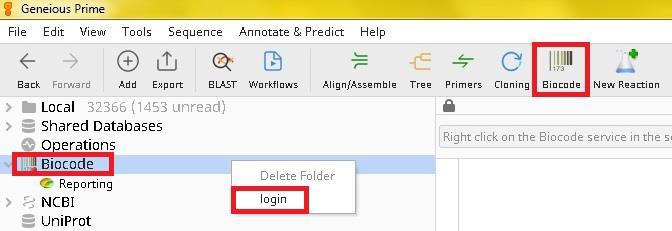 The detailed installation and login process for the Biocode Plugin is described here: Geneious for CaBOL - Installation and Database Login.