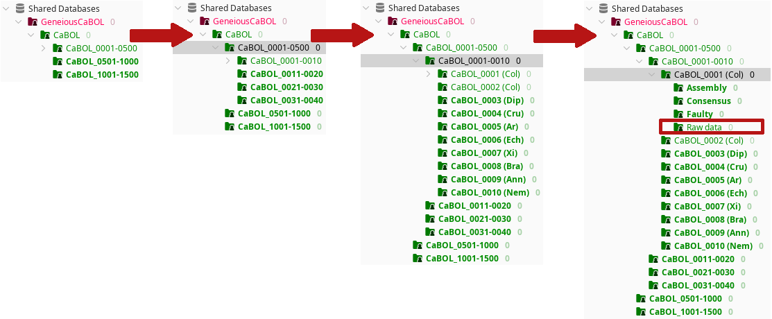 A Geneious Shared Database is set up for the CaBOL project. Please refer to the Geneious for CaBOL - Installation and Database Login guide to learn how to connect to the shared database.